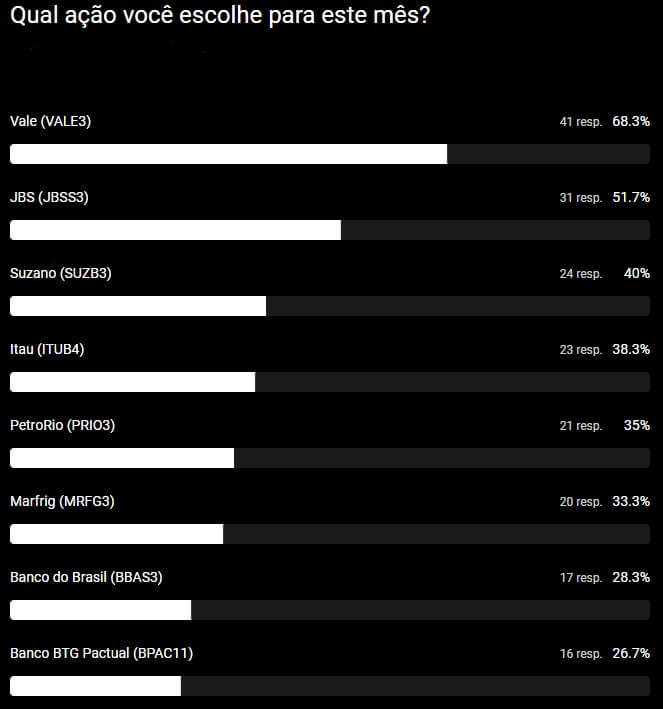 Através de pesquisa com alguns membros experientes, são escolhidas 30 ações ou BDRs para serem colocadas em votação a cada mês.