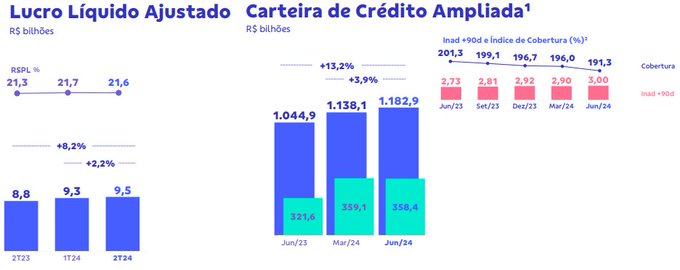 O Banco do Brasil encerrou o segundo trimestre com um aumento de 12% em sua receita líquida, atingindo R$ 7,5 bilhões. Esse crescimento é resultado de uma combinação eficaz de estratégias, como a otimização da carteira de crédito e a expansão dos serviços digitais (forte investimento em Opex), que têm atraído um número crescente de clientes. Além disso, o banco conseguiu reduzir suas despesas operacionais em 8%, atingindo uma eficiência que é, de fato, digna de elogios. Esses números são particularmente significativos em um contexto econômico que ainda apresenta desafios, como a volatilidade cambial e as incertezas políticas.