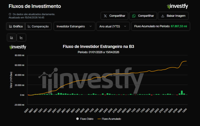 De um lado, você tem o investidor estrangeiro voltando e sustentando o mercado, trazendo fluxo positivo e posicionamento estratégico.