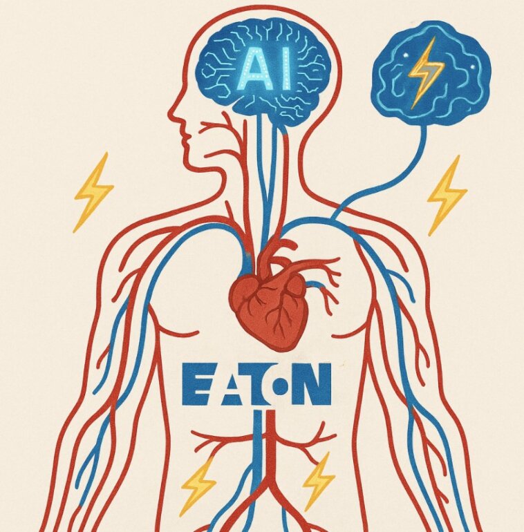 É aqui que entra a Eaton. A Eaton atua como o sistema circulatório da IA. Suas soluções de gerenciamento inteligente de energia — como transformadores, reguladores de tensão, sistemas de backup, painéis de distribuição e infraestrutura modular — são os vasos sanguíneos e o coração que garantem que a energia elétrica (o “sangue” dos data centers) chegue com estabilidade, segurança e eficiência.
