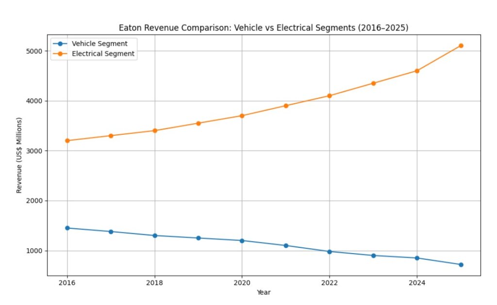 Eaton é uma empresa global de gerenciamento inteligente de energia, com atuação em diversos segmentos: data centers, utilidades, indústria, comércio, construção de máquinas, residencial, aeroespacial e mobilidade. Seu modelo de negócios está centrado na fabricação e integração de soluções elétricas, aeroespaciais e de mobilidade, com forte presença em mercados de alto crescimento como eletrificação e digitalização.