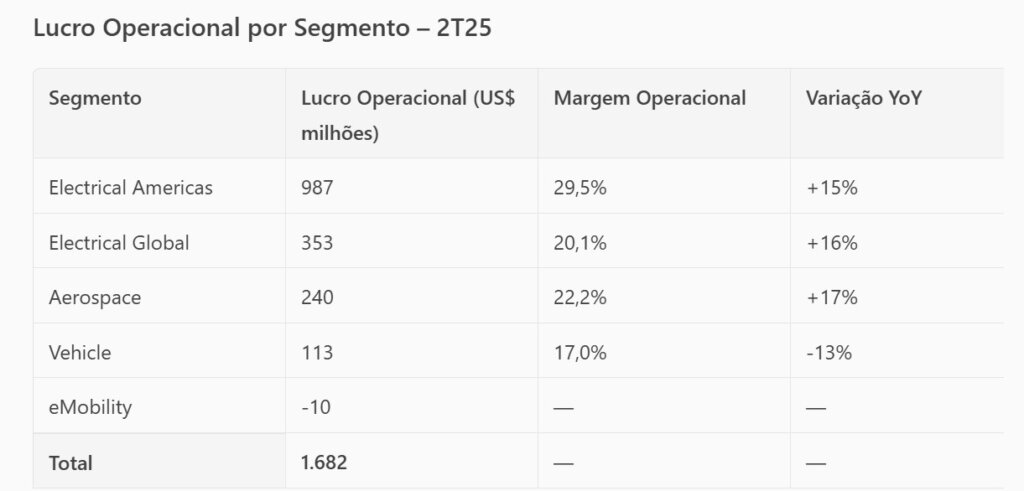 - Expansão de backlog: crescimento de 15% em elétrica e 16% em aeroespacial.