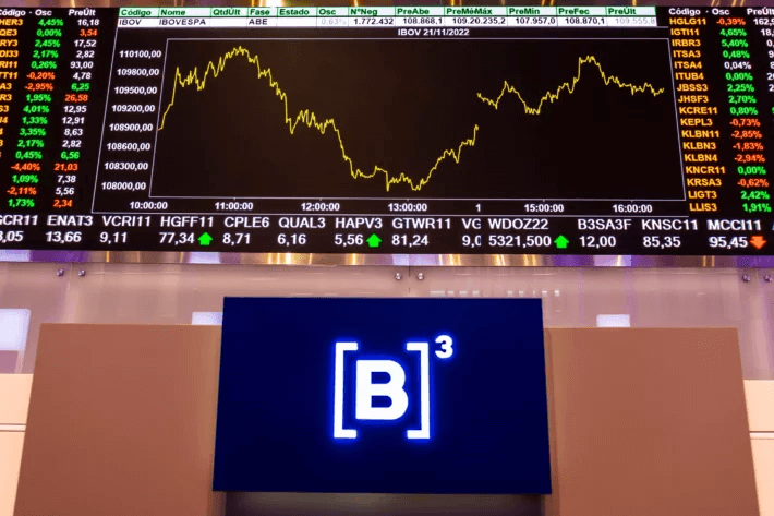 Entre os destaques positivos, Lojas Renner teve a maior valorização (+4,84%; R$ 18,83), seguida por CVC (+4,76%; R$ 1,98) e Cogna (+4,23%; R$ 1,48). Vale subiu 0,59% (R$ 59,70), Petrobras ON +0,33% (R$ 39,01) e Petrobras PN +0,67% (R$ 35,90).