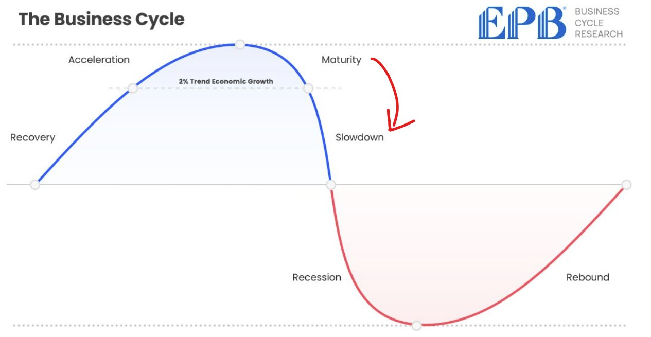 Aparentemente, podemos estar entrando na fase de transição do Maturity para um Slow Down. A questão é que uma virada do Slow Down para Recession pode ser muito brusca e em uma velocidade mais rápida e inesperada por todos, por isso, a grande atenção de aqui em diante.