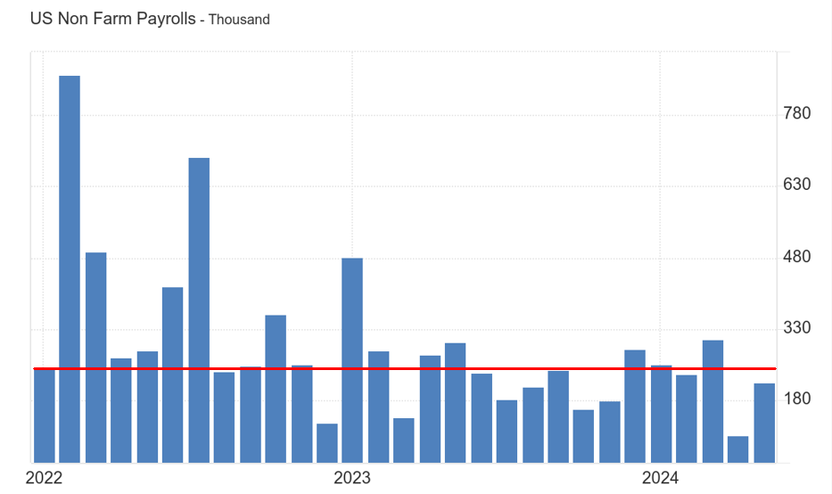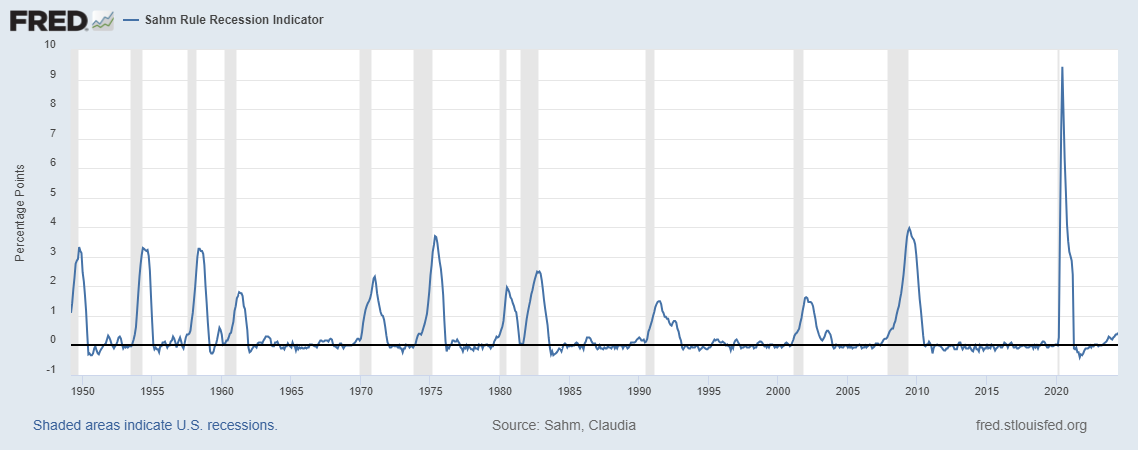 Trazendo um último ponto que José Faria Júnior nos trouxe após o Payroll, é sobre a Sahm Rule. Ainda não foi dado o trigger que acionaria a entrada em uma recessão, mas está bem próxima.