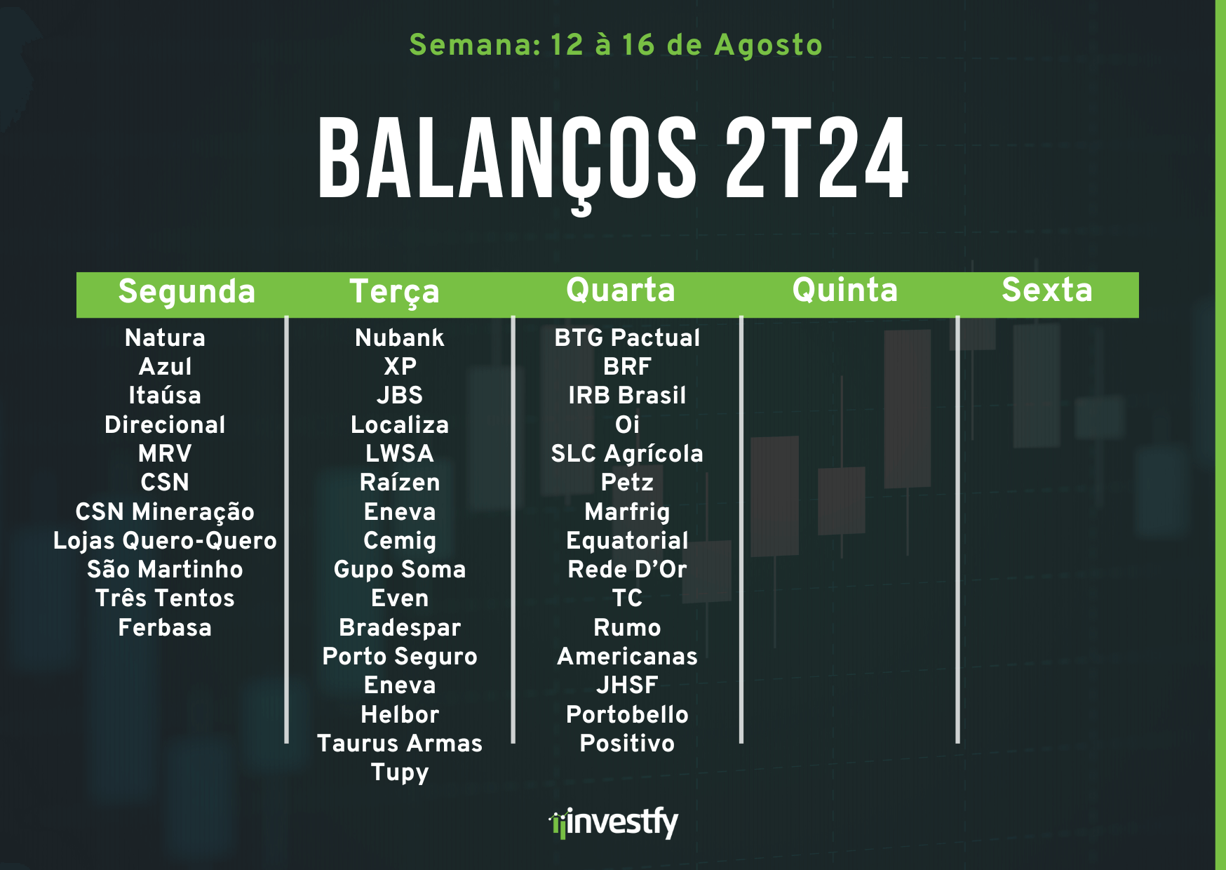 · Japão: A economia japonesa terá uma semana de dados esvaziados devido a um feriado na segunda-feira, mas será apresentada a prévia do Produto Interno Bruto (PIB) do segundo trimestre de 2024.