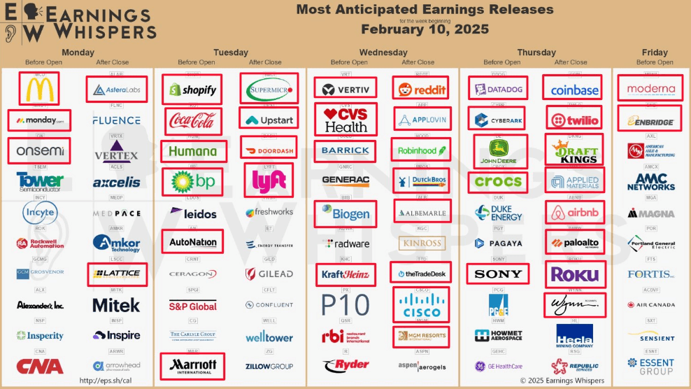 - Divulgação da inflação ao consumidor (CPI) de janeiro na quarta-feira (12) e inflação ao produtor (PPI) na quinta-feira (13).