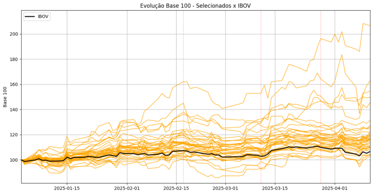 Esses ativos que passaram por todas as janelas com consistência têm maior probabilidade de continuar performando bem em uma eventual retomada.