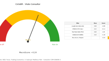 Especialista em análise política. Há mais de 7 anos operando no mercado financeiro, com formação em engenharia e em gestão pública. Investidor com grande experiência em opções e conhecedor do cenário político brasileiro e sua influência sobre o mercado financeiro. Comando diariamente o programa Canal Auxiliando no YouTube passando um overview do mercado, traduzindo as complexidades das informações de Brasília em análises precisas e diretas, que podem ser utilizadas nas decisões de investimentos