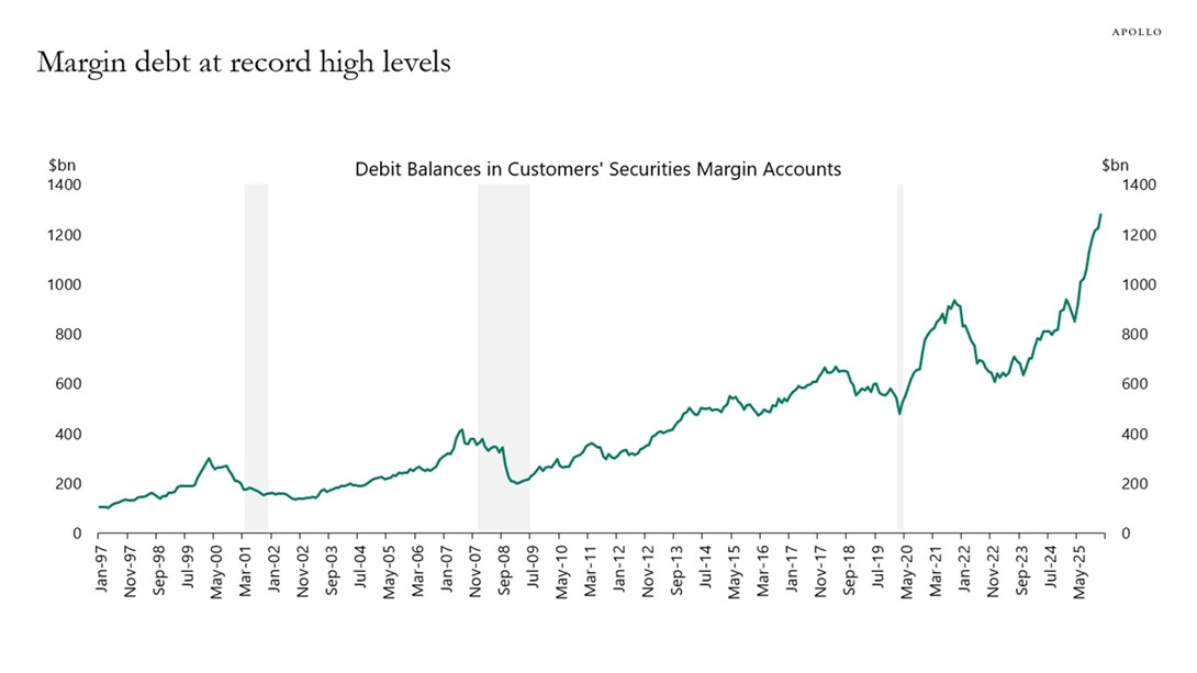 “Com o endividamento com margem em níveis recordes, qualquer queda nas ações corre o risco de se transformar em uma correção mais acentuada, à medida que investidores alavancados são forçados a vender em mercados em queda.”