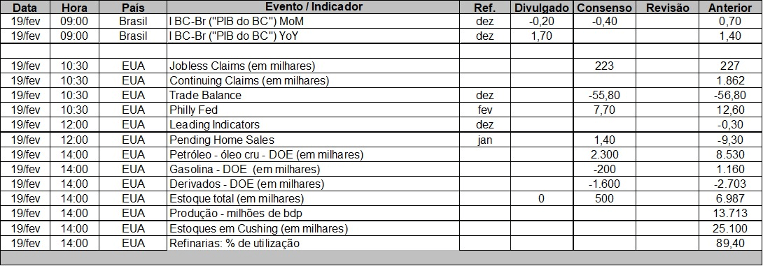 O número sugere que o PCE — inflação oficial — de janeiro deverá ser benigno. Para o Wells Fargo, o núcleo deve subir 0,26%, mas ainda não temos o PCE de dezembro nem o PPI de janeiro.